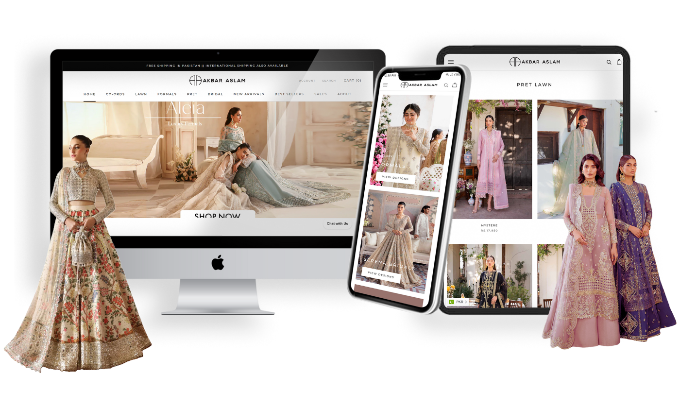 Akbar Aslam is a premium women’s ethnic brand blending modern aesthetics with timeless traditions. Our handcrafted and intricately embellished dresses, designed by master artisans, showcase the finest in luxury fashion. Explore our collections, from elegant bridals to chic pret and exquisite lawn, ensuring sophistication for every occasion.